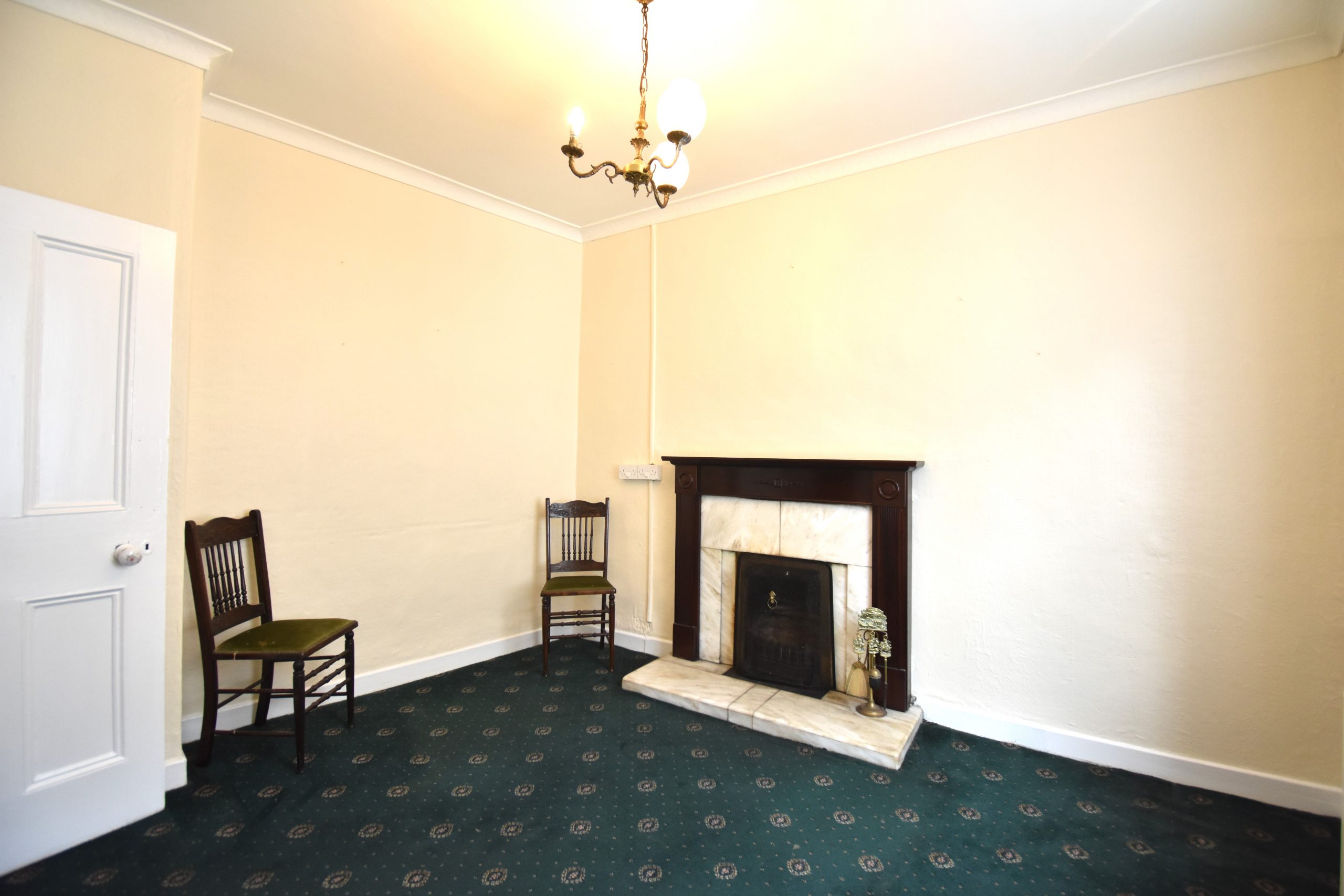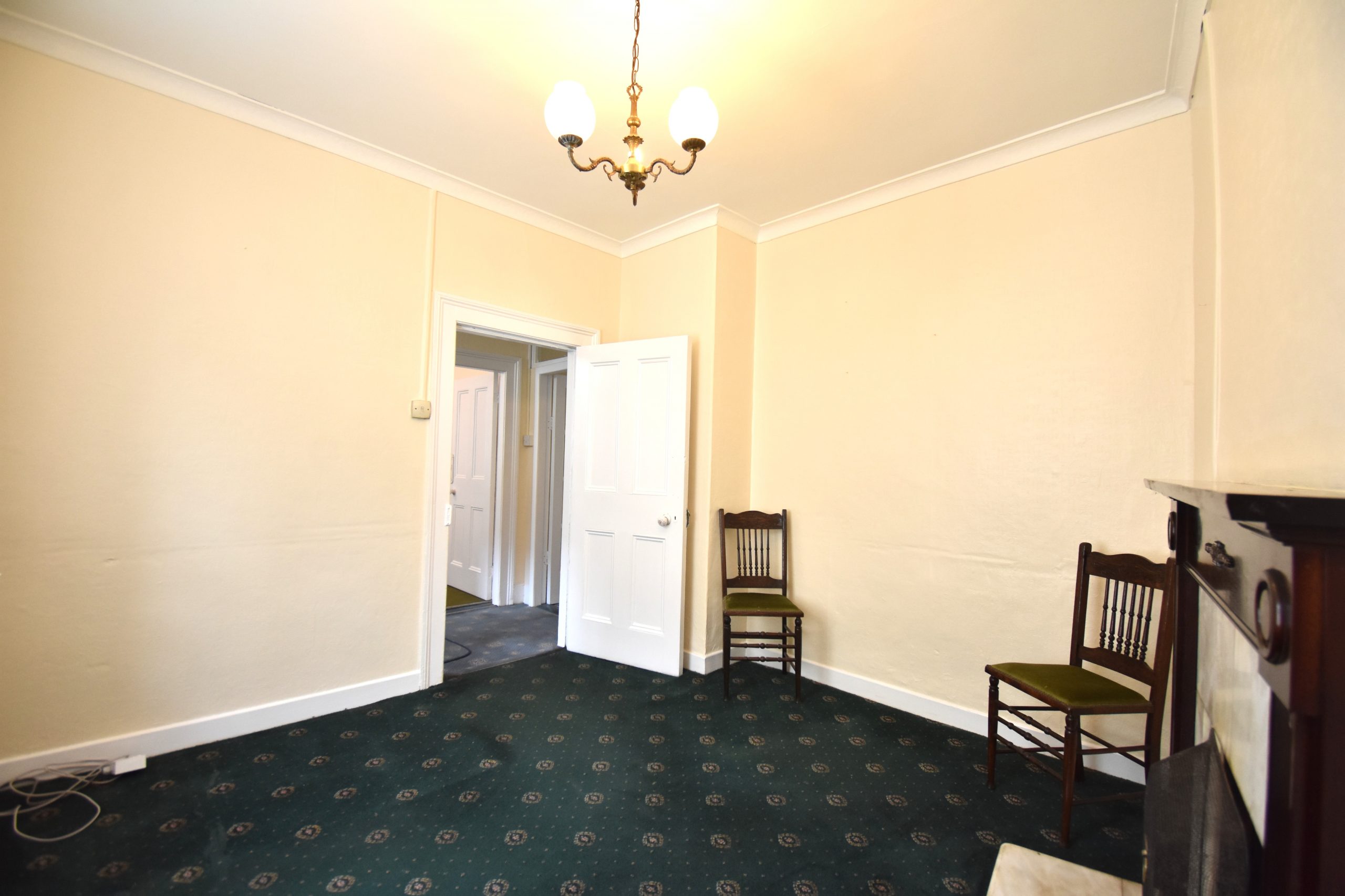 Accommodations are very spacious and laid out to consist of carpeted entrance hallway, leading to two lovely reception rooms. The first of which would make an ideal dining room/office/studio, laid carpet to floor and offering built in storage units. The main living room boasts mahogany and marble surround fireplace with open fire and carpeted flooring. High ceilings prevail throughout the ground floor level of the home for a grand sense of space.