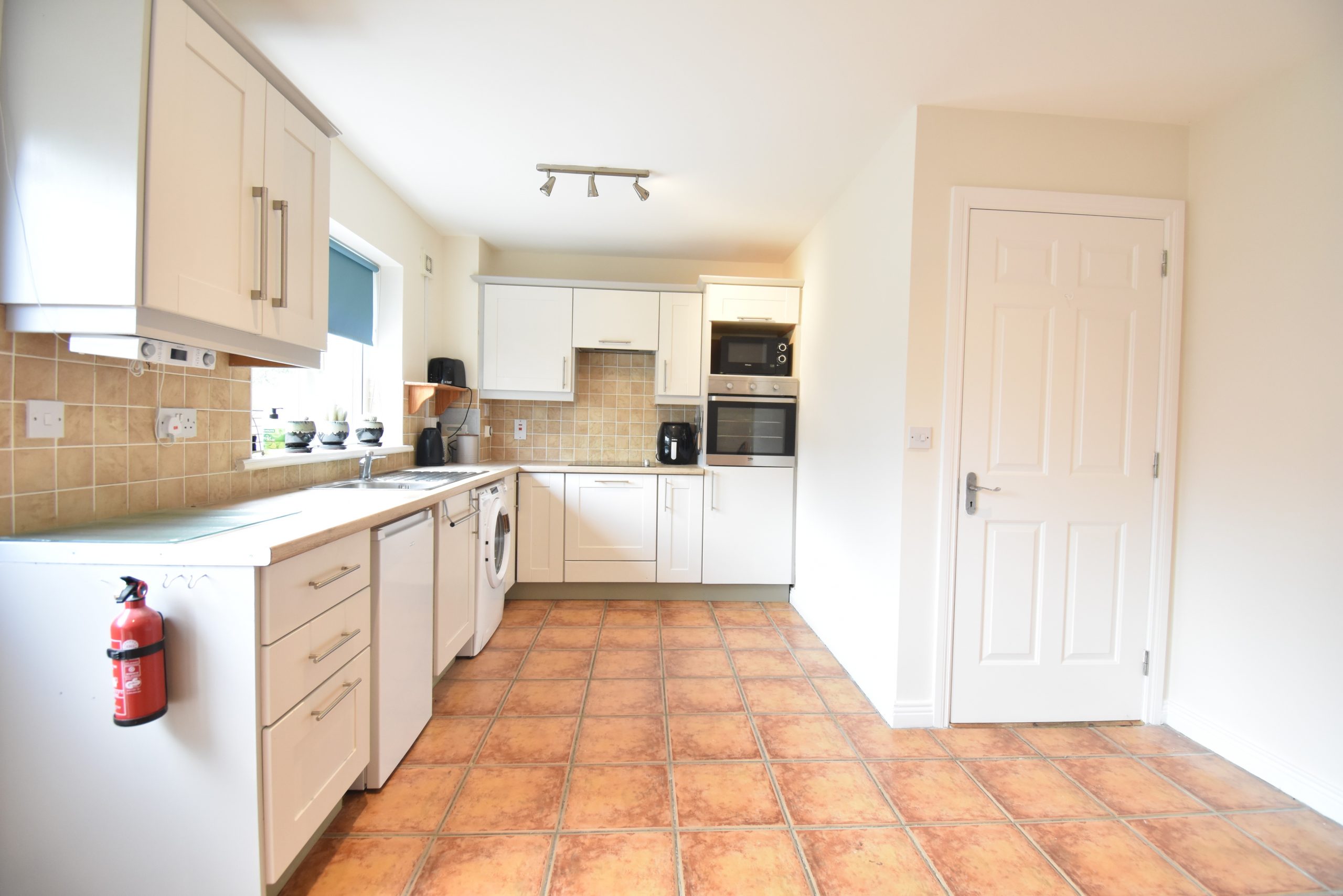 Accommodation consists of entrance hallway laid to floor with tile, carpeted staircase to first floor and under stairs wc. The sitting room is very nicely presented with laminate flooring and open fireplace. The kitchen/dining room offers fully fitted units in neutral shaker style with ample storage, tiled flooring and tiled backsplash.